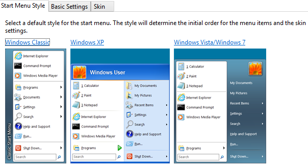Il propose les différents menus Demarrer de Windows, depuis Windows 95 à Vista.